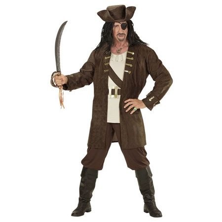 Strój Kapitan Pirat, Pirata, Piracki, Karnawał, zestaw zawiera: płaszcz, koszulę, spodnie, pasek, kapelusz, kolor brązowy.