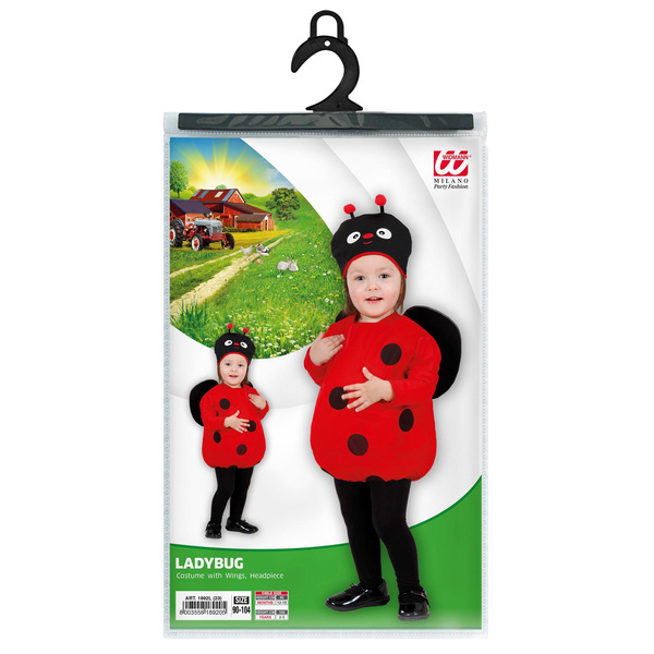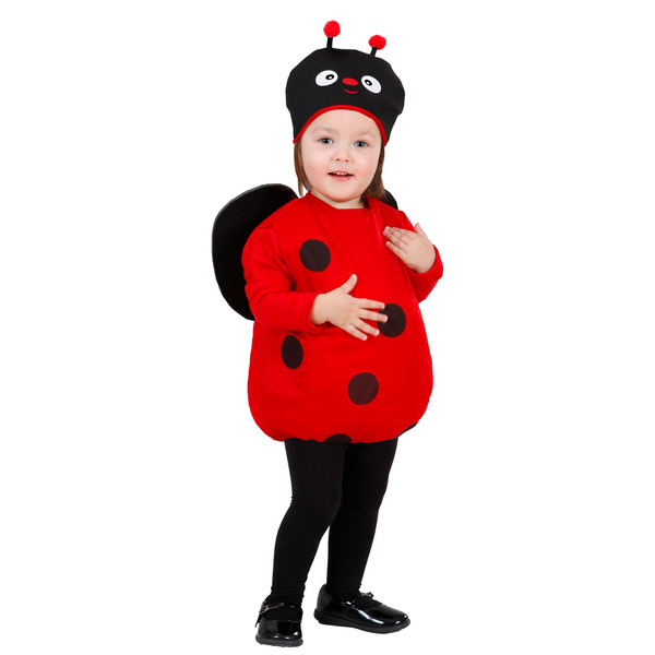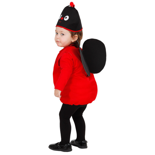 Bluzeczka/kamizelka w kolorze czerwonym; z doszytymi skrzydełkami. Na głowę zakładana czapeczka. Materiał imitujący bawełnę. Brzuszek wypchany warstwą watoliny.