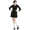 Dół spódniczki krótki, od pasa delikatnie rozkloszowany.