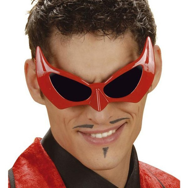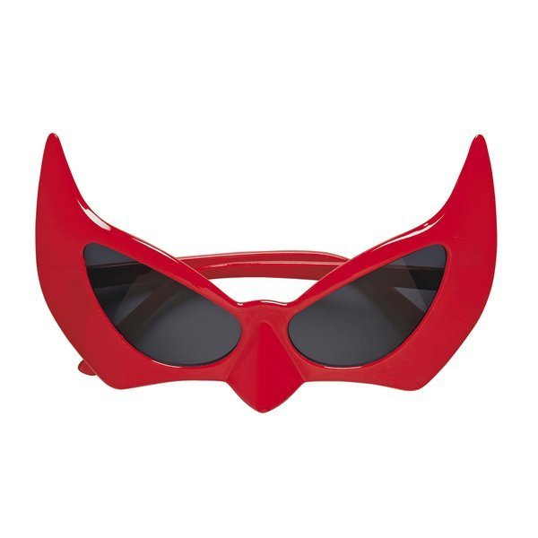 Okulary czerwone z zaostrzonymi brzegami przypominające rogi diabła.