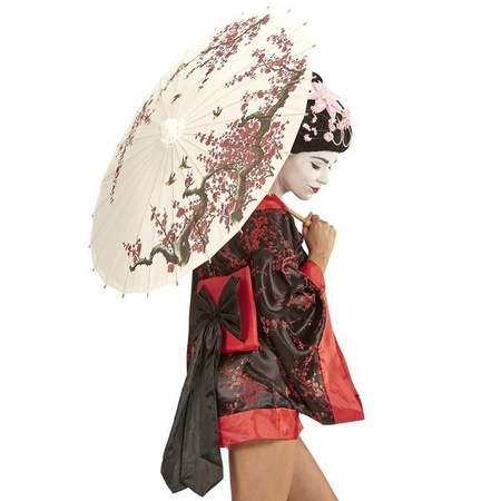 Orientalny Parasol w kolorze białym z ozdobnym nadrukiem.