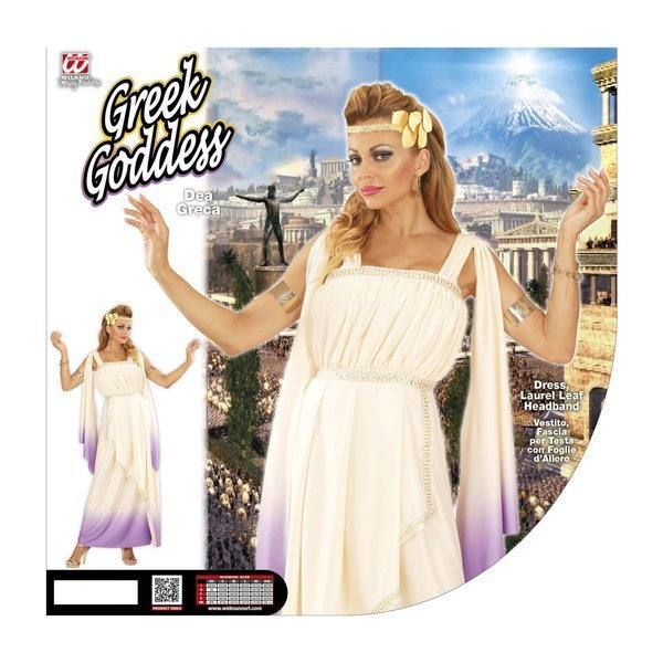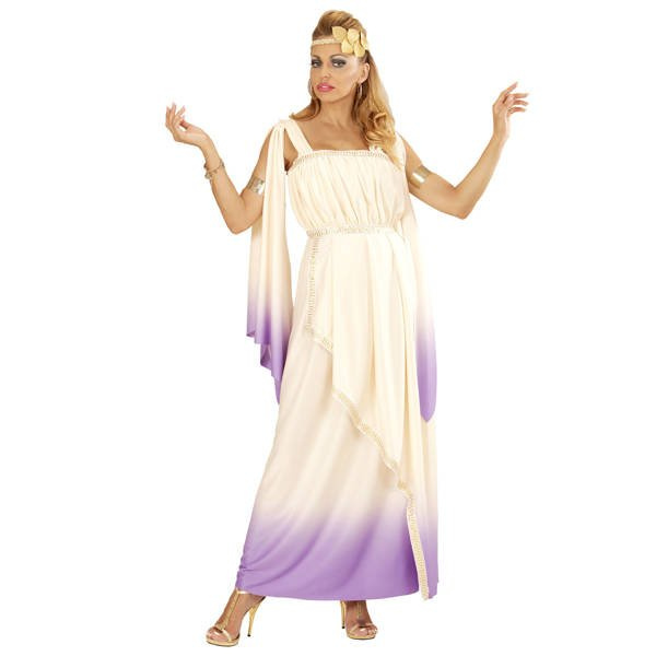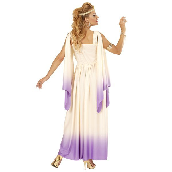 Strój Grecka Bogini, zestaw zawiera: sukienkę, opaskę na głowę, kolor kremowo-fioletowy.