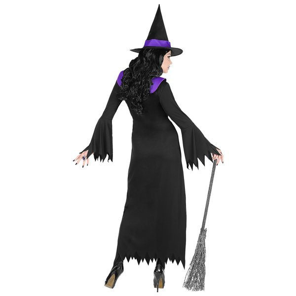 Suknia długa, ozdobiona paskiem z klamrą.