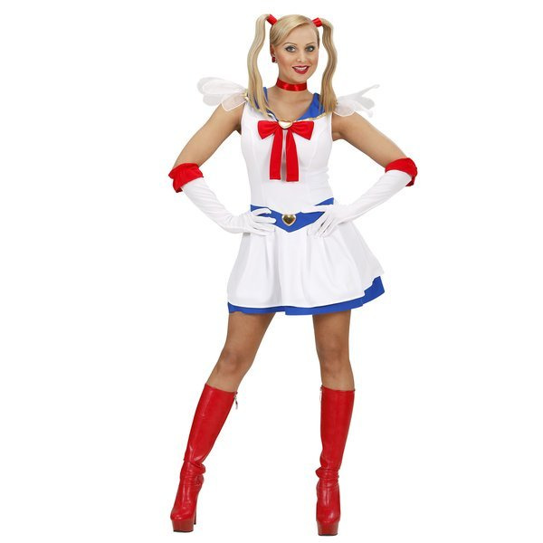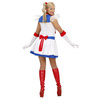 Zestaw zawiera: sukienkę, rękawiczki, choker, kolor niebiesko-czerwono-biały.