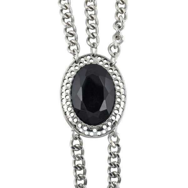 Gotycka bransoletka z pierścionkiem, biżuteria z ozdobnym czarnym kamieniem.