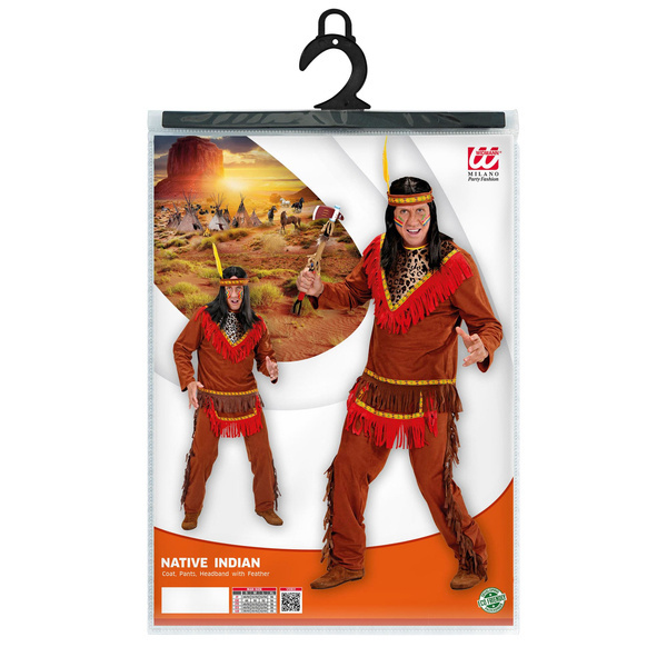 Strój Indianina, zestaw zawiera: bluzkę, spodnie, opaskę z piórkiem, kolor brązowo-czerwony.
