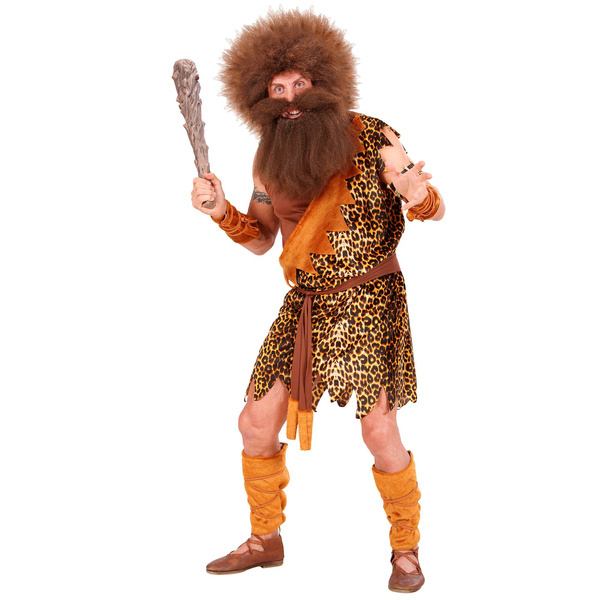 Strój Jaskiniowiec, Jaskiniowca, Karnawał, zestaw zawiera: tunikę, pasek, opaski na ręce, nakładki na buty, kolor brązowy.