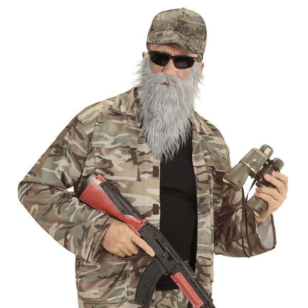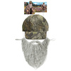 Produkt zawiera czapkę z daszkiem i siwą brodę.