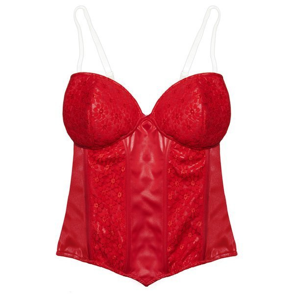 Gorset Czerwony, Burleska, Can Can, Kabaret, gorset z ozdobną koronką, wzór kwiaty, kolor czerwony