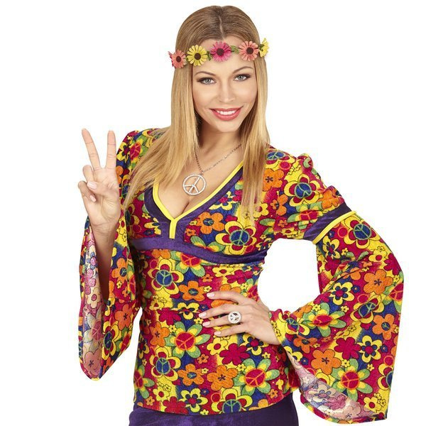 Wianek hipiski z kolorowych kwiatów.