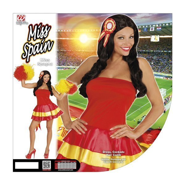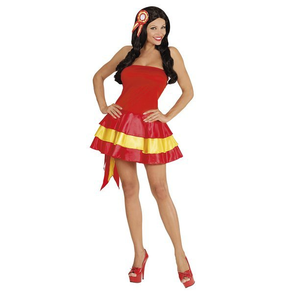 Strój Miss Hiszpanii, Hiszpanka, Karnawał, zestaw zawiera: sukienkę i ozdobę do włosów, kolor żółto-czerwony