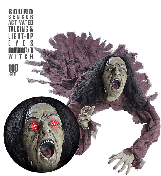 Głowa i dłonie wiedźmy wykonane są z tworzywa sztucznego.