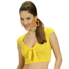 Wiązanie przy dekolcie, bluzka odsłania brzuch.