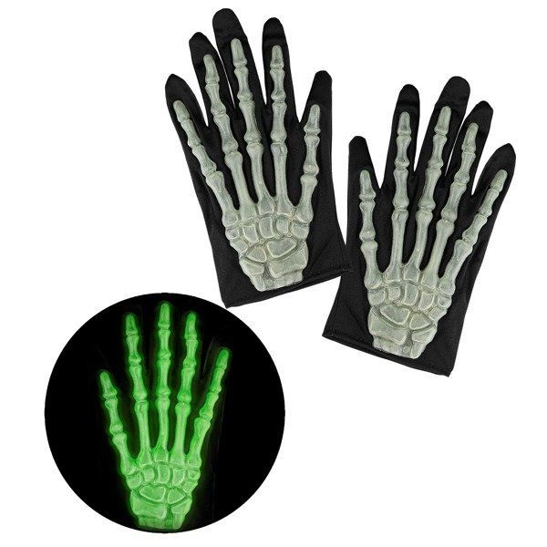 Rękawiczki z imitacją kości, świecące w ciemności.