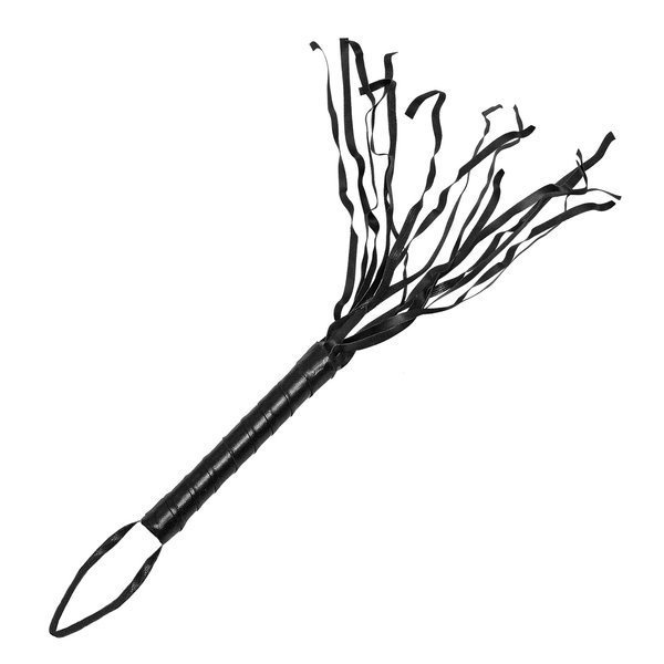 Zakończony pędzelkiem/zbiorem płaskich rzemyków o długości około 25 cm.