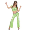 Spodnie damskie disco dzwony w kolorze holograficznym zielonym. Skład: 100% poliester.