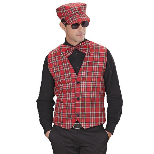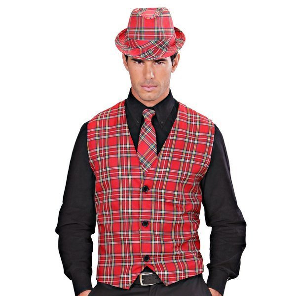 Kamizelka wykonana z materiału w szkocką kratkę.