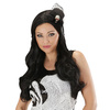 Kapelusz w kolorze czarnym z ozdobną czaszką i tiulem.