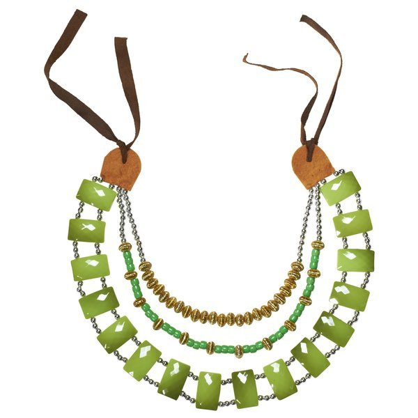 Koraliki w kolorze: zielonym, srebrnym i złotym.