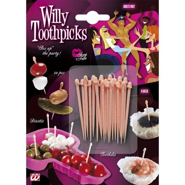 Wykałaczki Penisy. Zestaw zawiera 20 sztuk wykałaczek w zabawnym kształcie penisa.