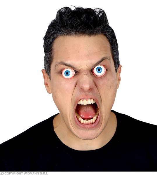 Gałki oczu dające efekt wytrzeszczu. Wykonane z plastiku z wyciętym centralnie otworem.