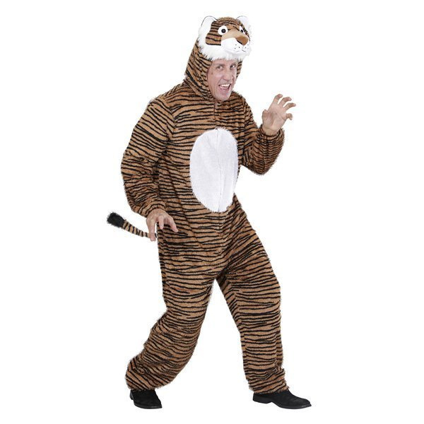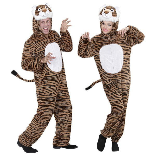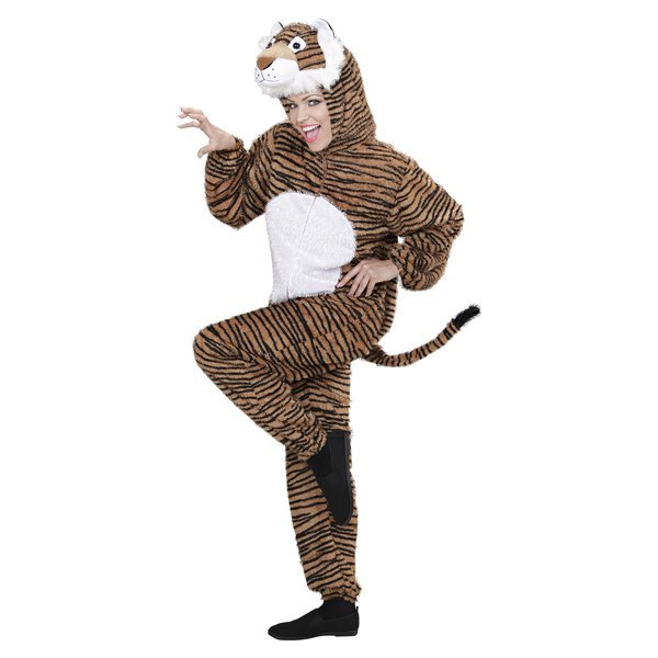 Strój Tygrys, Tygrysa, Bal przebierańców, kombinezon z kapturem, kolor czarno-brązowo-biały.