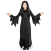 Dół sukienki oraz rękawy zakończone materiałem pociętym w trójkąty.