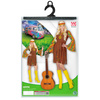 Sukienka w różnobarwne kwiaty z brązowymi frędzelkami, wciągana przez głowę.