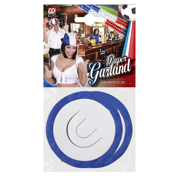 Girlanda papierowa w kolorze czerwono-biało-niebieskim.
