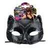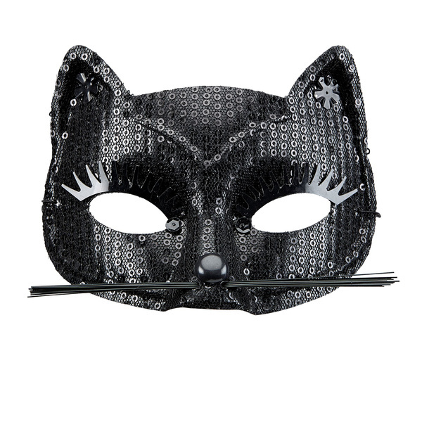 Maska wykonana z miękkiego materiału. Wycięta w koci kształt. Wierzchnia warstwa materiału czarna. Maska zakładana na gumkę.