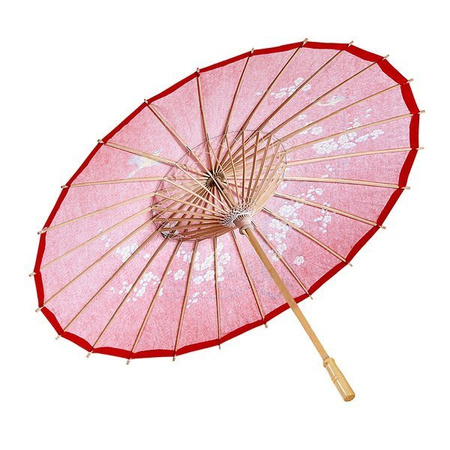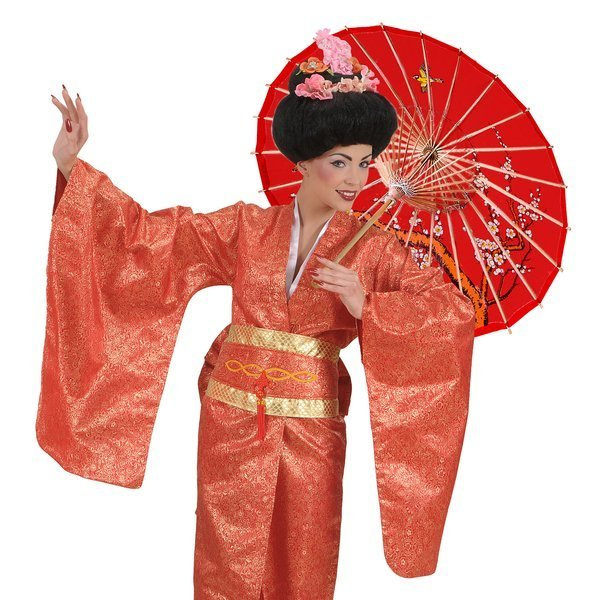 W kolorze czerwonym z ozdobnym nadrukiem.