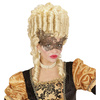 Maska wykonana ze sztucznego tworzywa o strukturze azurowej koronki. Kolor: złoty. Mocowana na gumce.