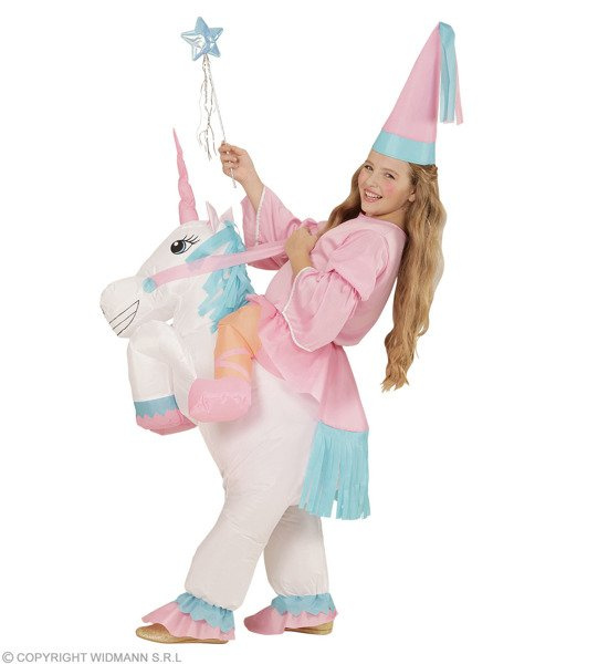 Kombinezon; jednorożec koloru białego, nogi jeźdźca różowe.