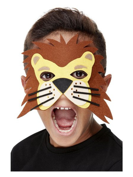 Maska brązowo-żółta wykonana z filcu.