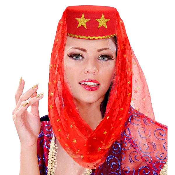 Do czapki doczepiony tiul ozdobiony gwiazdkami.