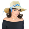 KAPELUSZ BEŻOWY Z NIEBIESKĄ WSTĄŻKĄ