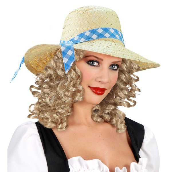 Kapelusz farmerski z niebieską wstążką.