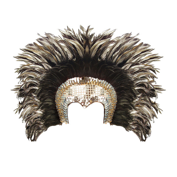 Wachlarz dwóch rzędów czarnych piór: matowych oraz lekko mieniących się srebrem.