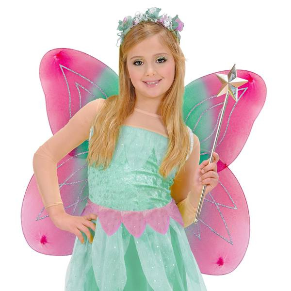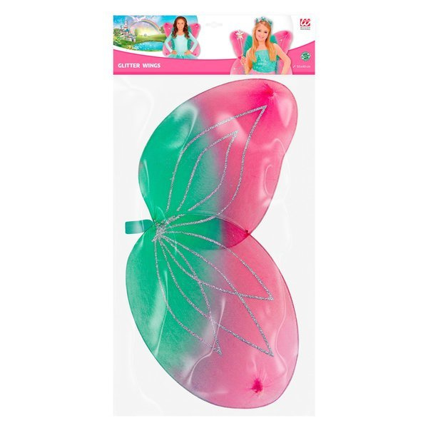 Skrzydła w kolorze różowo-zielonym.