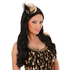 Mini kapelusik zdobiony brokatem, satynową wstążeczką i piórkiem.