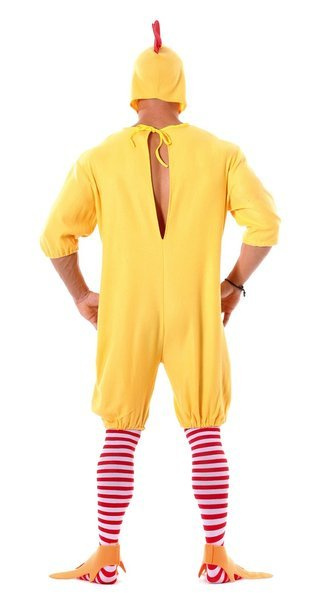 Nakrycie głowy w formie głowy kurczaka z dziobem i grzebieniem.