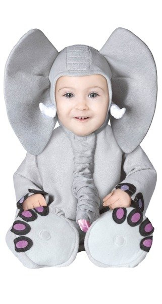 Kaptur szary z doszytymi dużymi uszami słonia i trąbą.
