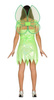 Sukienka zielona z poszarpanymi rękawkami i dołem.