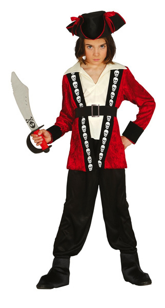 Kapelusz piracki czarny z czerwoną lamówką i wstążkami.