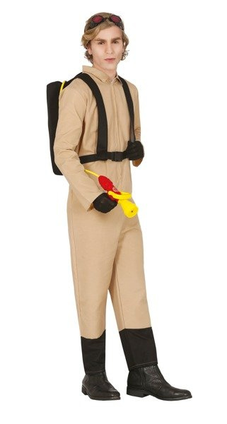 Strój w kolorze beżowym zapinany z przodu na zamek.