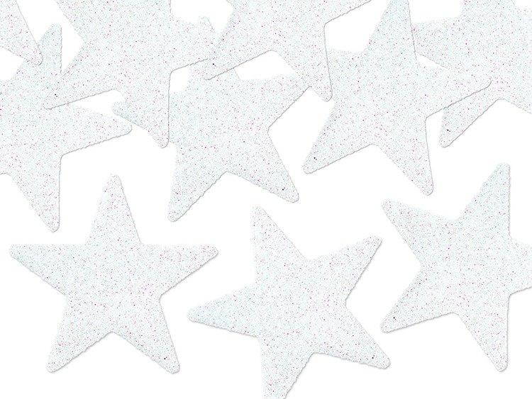 Dekoracje brokatowe Gwiazdka, w kolorze białym, rozmiar 5 centymetrów.(1 op. / 8 szt.)