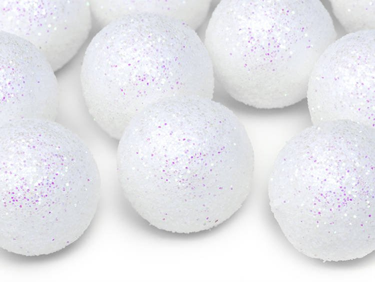 Dekoracje brokatowe Kula, w kolorze białym, rozmiar 3 centymetry.(1 op. / 9 szt.)