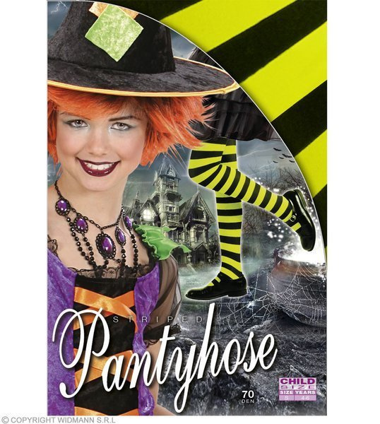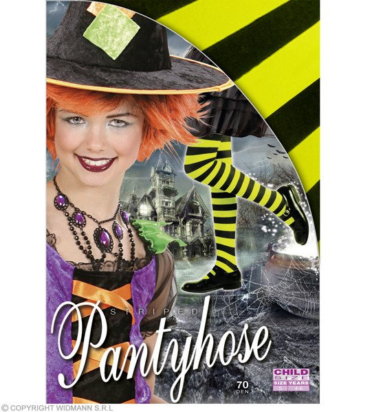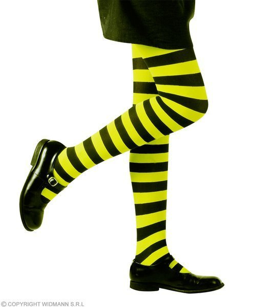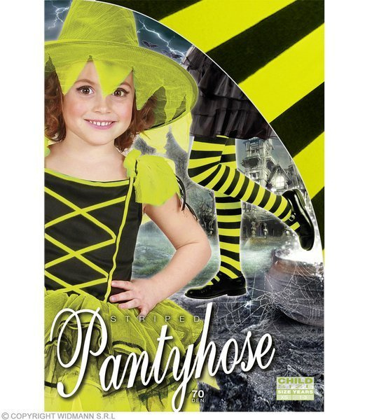 Rajstopy w czarno-zielone paski.