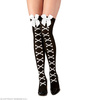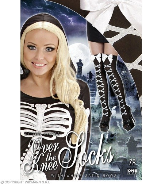 Czarno- białe zakolanówki wykonane z nylonu (98%) z dodatkiem elastycznego spandexu. Pończochy są matowe.