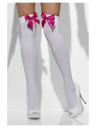 Zdobione satynowymi kokardkami w kolorze fuksji.